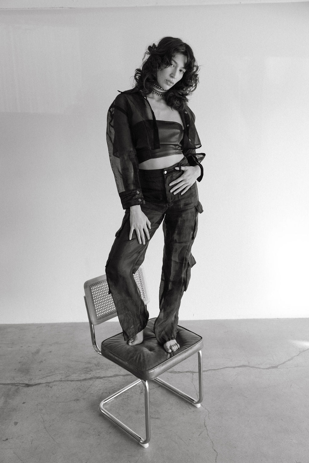 Lightweight and sheer with a semi-structured finish, this shirt is designed in organza with an oversized fit, classic collar, and front snap closure. Available cropped or full length. Wear it layered under our leather tank, over a brami, tucked in or out, buttoned or open. A versatile statement piece made to express your style, your way.